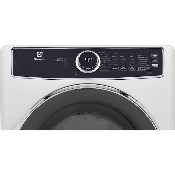 The Electrolux front load electric dryer with LuxCare® Dry uses a moisture sensor to prevent over or under-drying. The Instant Refresh cycle allows you to remove wrinkles and refresh clothing in just 10 minutes.