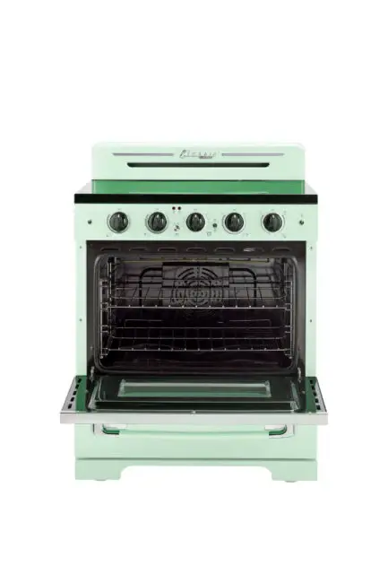 The 30" Classic Retro Electric Range transports you back to the ‘50s with its iconic retro design and chrome finished accents. It has a 5-element sleek glass electric cooktop capable of an intense sear or delicate sauce simmering. This range also allows for convection cooking circulating heat for incredibly even distribution.